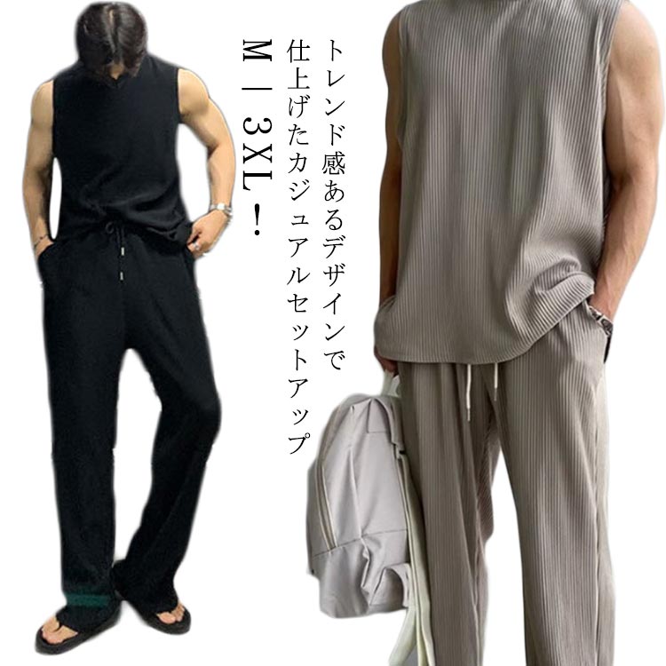 無地 涼しい ロングパンツ タンクトップ 運動着 ストレッチ M~3XLメンズファッション トップス タンクトップ