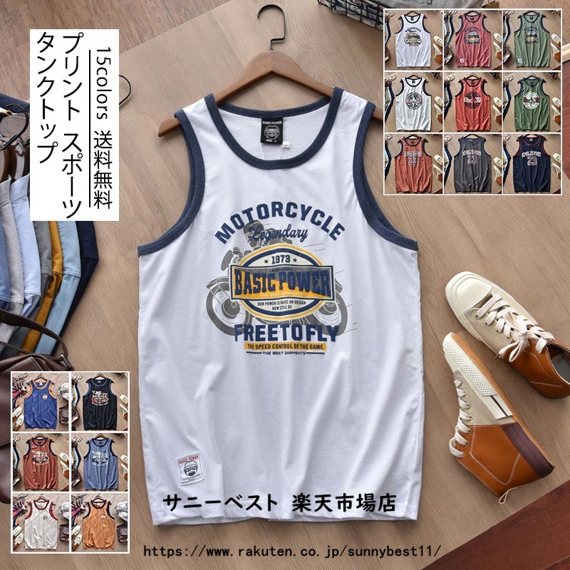 タンクトップ メンズ プリント インナー Tシャツ ノースリーブ バスケ トップス スポーツ 夏用 綿 かっこいい ファッション ジム 薄手 おしゃれ