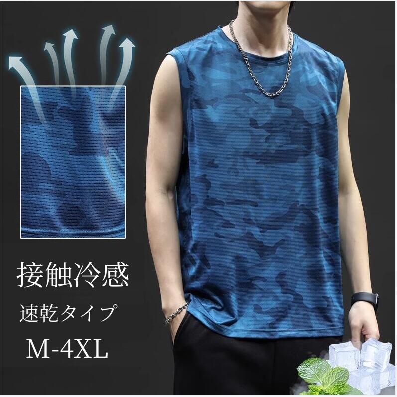 トレーニング メンズTシャツ ジム ノースリーブ タンクトップ スポーツ 速乾 吸汗 フィットネス 筋トレ ランニングシャツ 運動着 大きいサイズ 全3色 迷彩柄