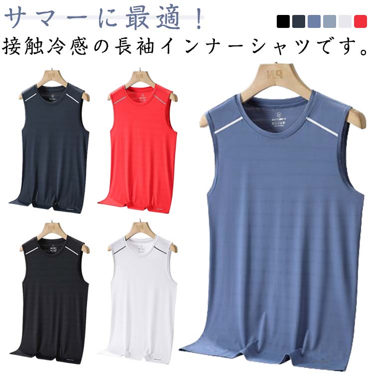 無縫製 接触冷感 シャツなどのアウターに響きにくいシームレス仕様のインナーシャツ タンクトップ 薄手 軽量 伸縮性 通気性 男性用 涼しい タンクトップ 暑さ対策 柔らかい