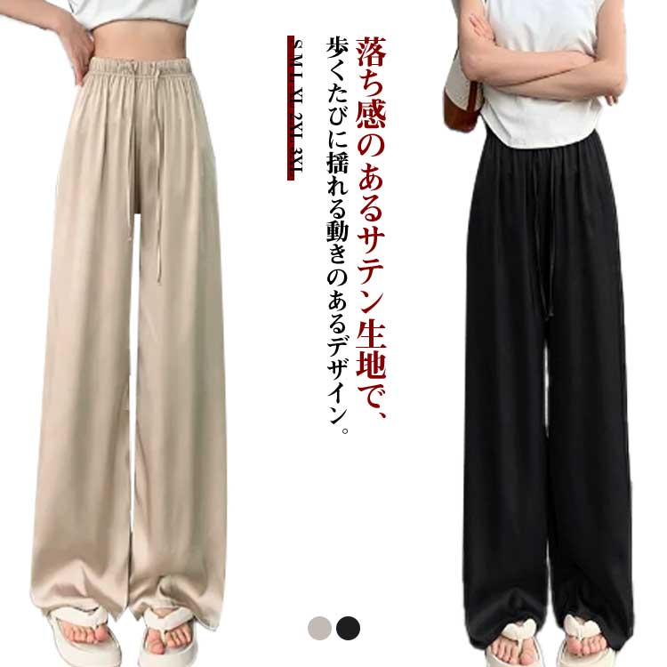 パンツ ワイドパンツ サテンパンツ パンツ サテン きれいめ 涼しい 夏 レディースレディースファッション ボトムス パンツ