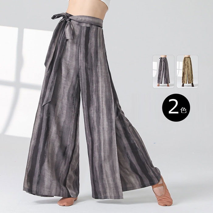 ダンスパンツ ダンスウェア ワイドパンツ パンツスカート レディース ズボン ダンス 衣装 ロング丈 ウエストゴム レディース ダンス衣装 レッスン着 バレエレッスン社交ダンスダンス 発表会 ブラウン
