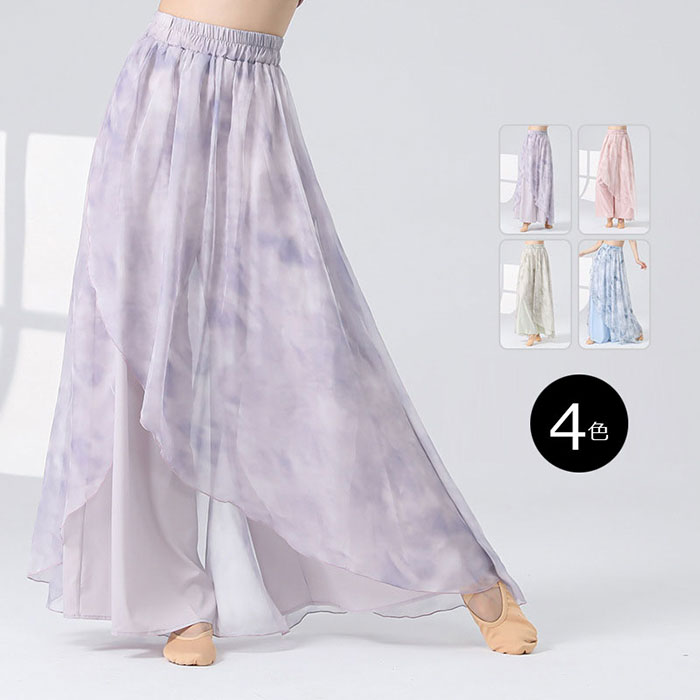 ダンスパンツ ダンスウェア ワイドパンツ パンツスカート レディース ズボン ダンス 衣装 ロング丈 ウエストゴム レディース ダンス衣装 レッスン着 バレエレッスン社交ダンスダンス 発表会 ブルー