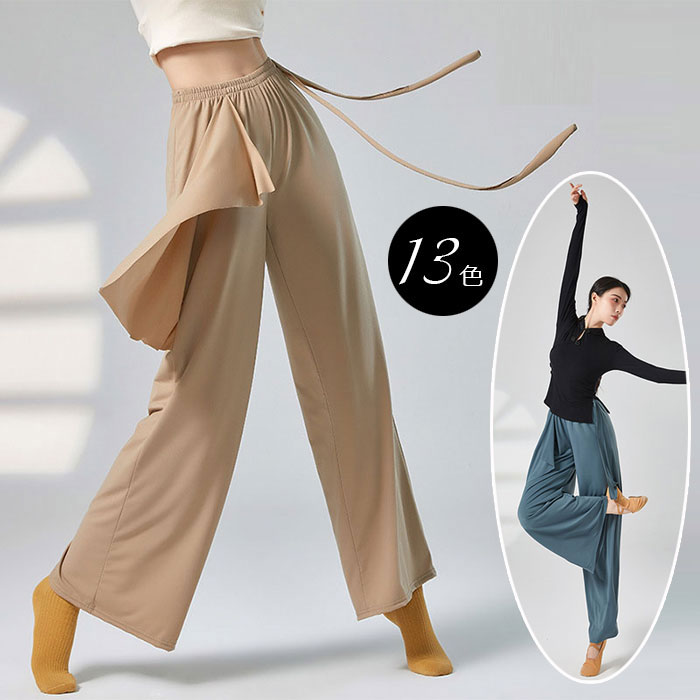 ダンスパンツ ダンスウェア ワイドパンツ ウエストヒモ レディース ズボン ダンス 衣装 ロング丈 ウエストゴム レディース ダンス衣装 レッスン着 バレエレッスン社交ダンスダンス 発表会 イエロー