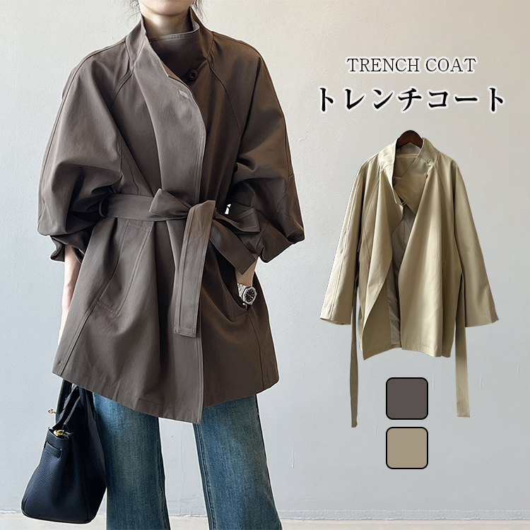 トレンチコート レディース 秋 冬 スタンドカラー スプリングコート ショートコート 羽織り トレンチコート アウター コート Aライン ミディアム丈 ロング丈 オリジナル 大きいサイズ きれいめ カ