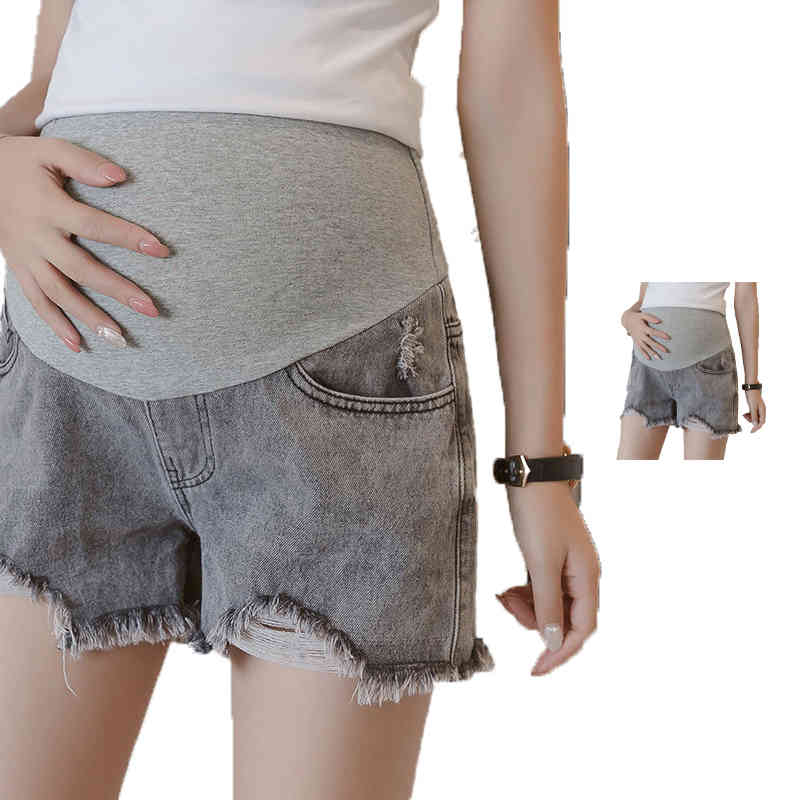 パンツ デニム ショートパンツ マタニティウェア 妊娠服 ダメージ加工 フリンジ マタニティデニム 産前産後