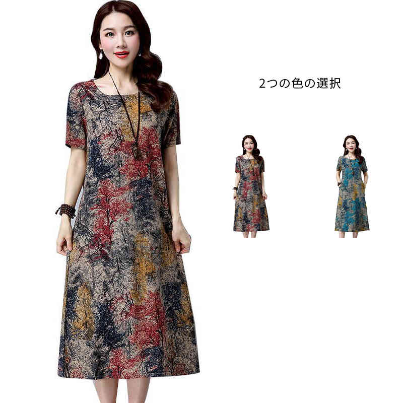 おしゃれワンピースマキシ丈ロングワンピース薄手 プリントワンピース ゆったり ナチュラル森ガールレディースファッション ワンピース