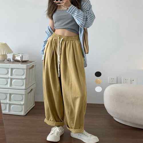 ハイウエスト ストレートパンツ ゆったり ロングパンツ カジュアル リラックスパンツ体型カバー 楽ちん イージーパンツ 着やせボトムス無地 ウエストゴムズボン 韓国風パンツ春夏秋