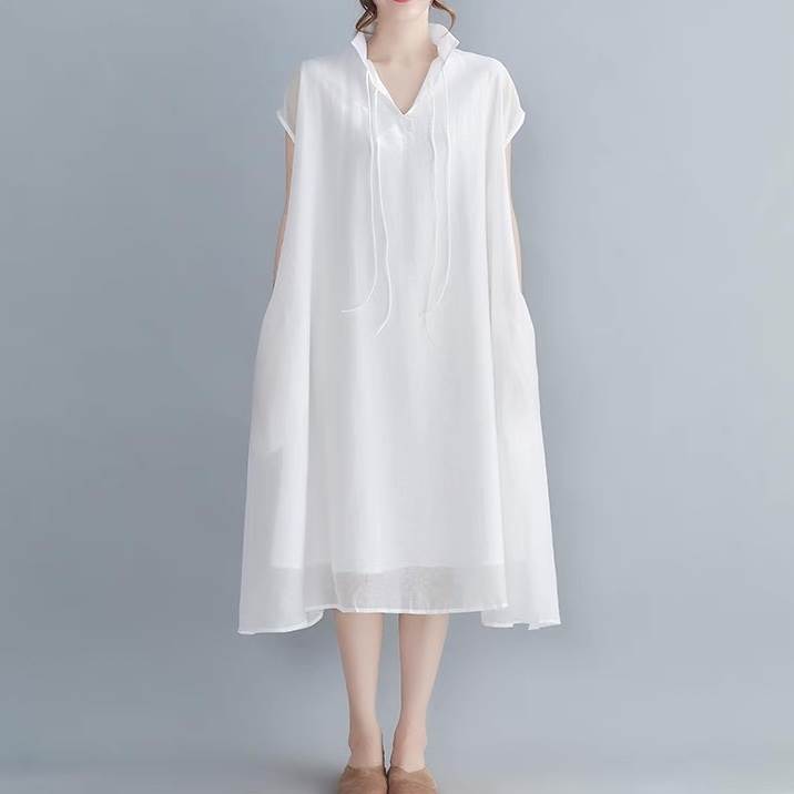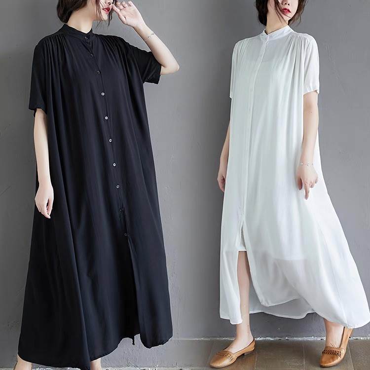 ワンピース レディース シャツワンピ フレア 前開き マキシ 半袖 スタンドカラー Aライン フェミニン ストリート かわいい 大人可愛い きれいめ シンプル カジュアル おしゃれ かっこいい