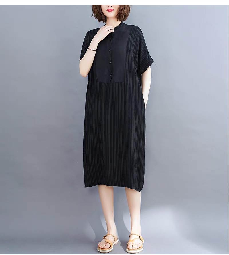 ワンピース レディース シャツワンピ フレア 前開き マキシ 半袖 スタンドカラー ライン フェミニン ストリート かわいい 大人可愛い きれいめ シンプル カジュアル おしゃれ かっこいい