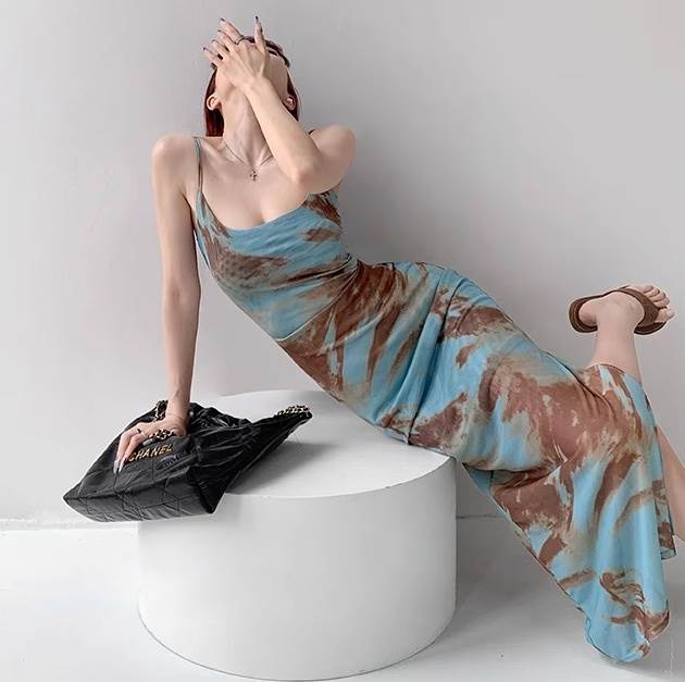ワンピース レディース ドレス ロング マキシ 袖なし ノースリーブ スクエアネック タイト スリム 細身 スマート フェミニン サイドスリット セクシー おしゃれ エスニック エキゾチック