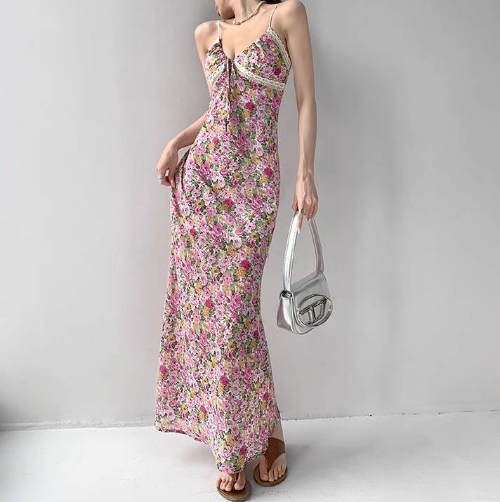 ワンピース レディース フレア ロング マキシ 袖なし ノースリーブ Vネック 切り替え フェミニン レース リボン ハイウエスト セクシー かわいい 大人可愛い シンプル カジュアル