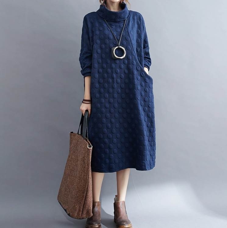 ワンピース レディース 膝丈 膝下 長袖 ハイネック タートルネック アシンメトリー オーバーサイズ フェミニン ポケット カジュアル 上品 おしゃれ レトロ こなれ感 ラフ ガーリー
