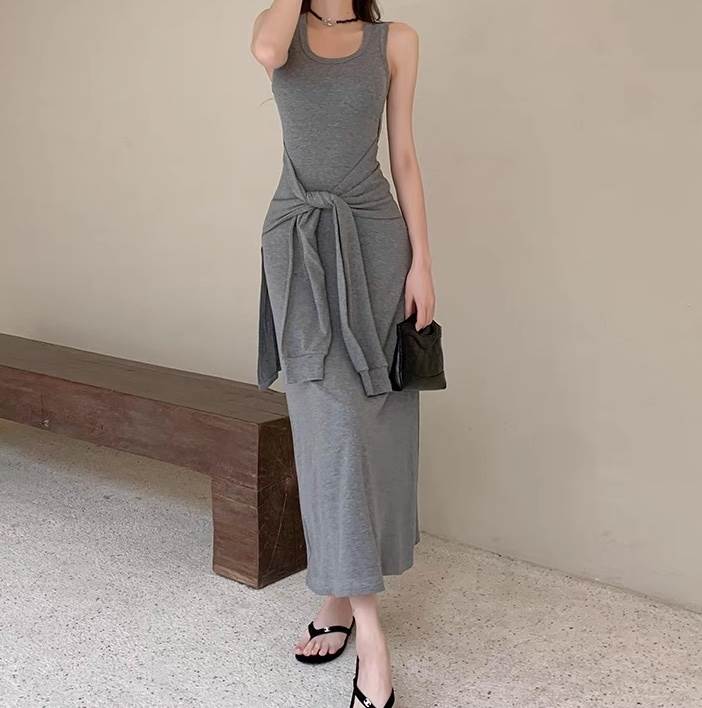 ワンピース レディース マキシ 袖なし ノースリーブ タイト スリム 細身 ライン ドッキング スマート フェミニン ストリート アメカジ 大人可愛い きれいめ シンプル カジュアル