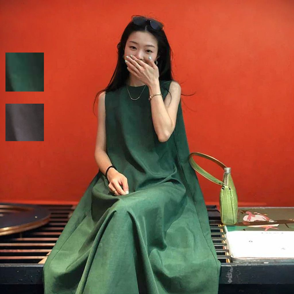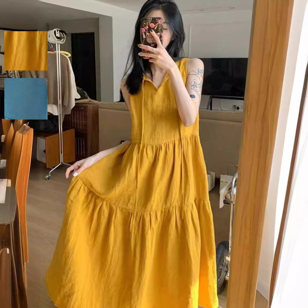 ティアードワンピース ロングワンピース Aライン リネン リネンワンピース 綿麻 ノースリーブワンピース 膝下丈 マキシ丈 夏