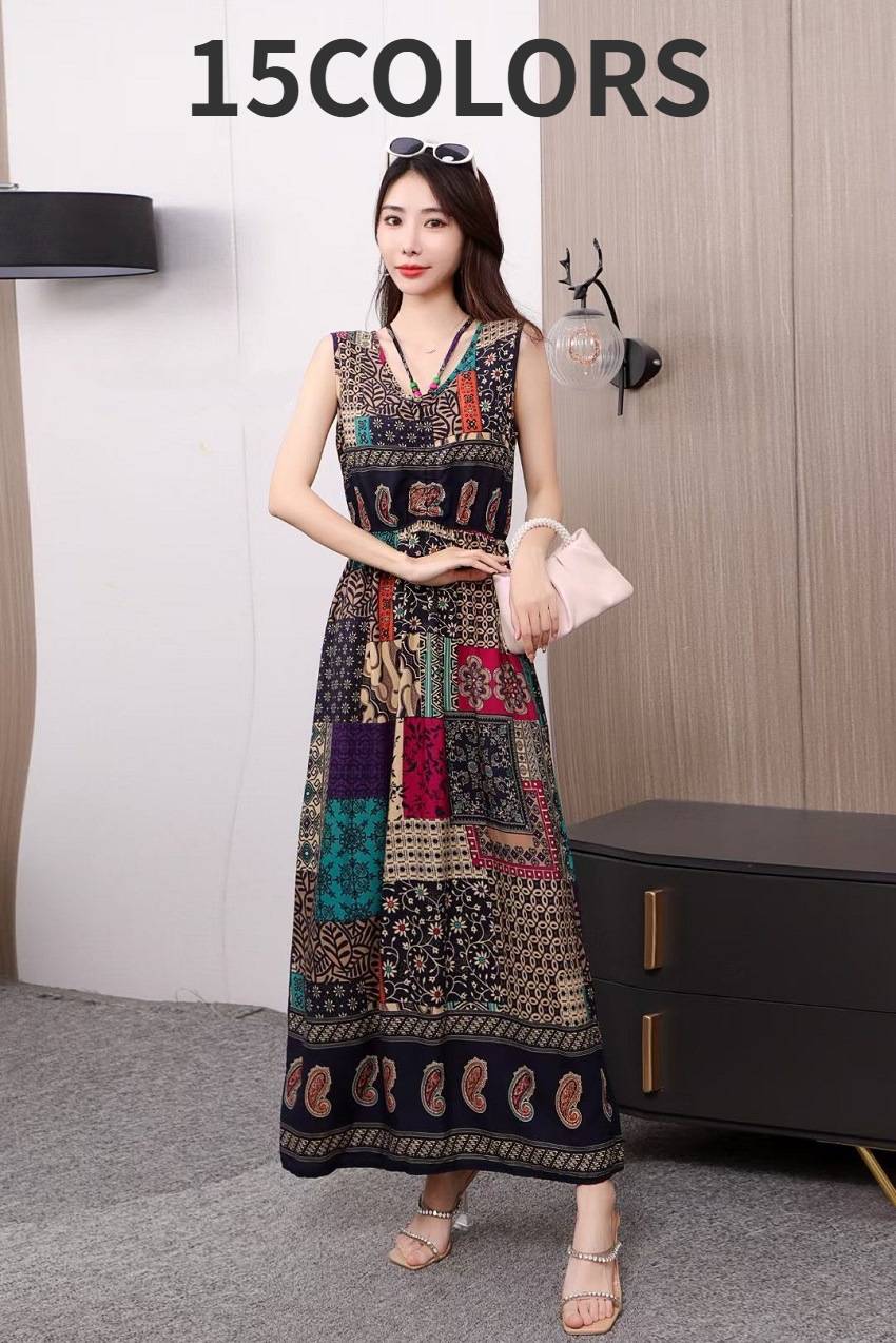 ロングワンピース Aライン ノースリーブワンピース 膝下丈 マキシ丈 夏レディースファッション ワンピース