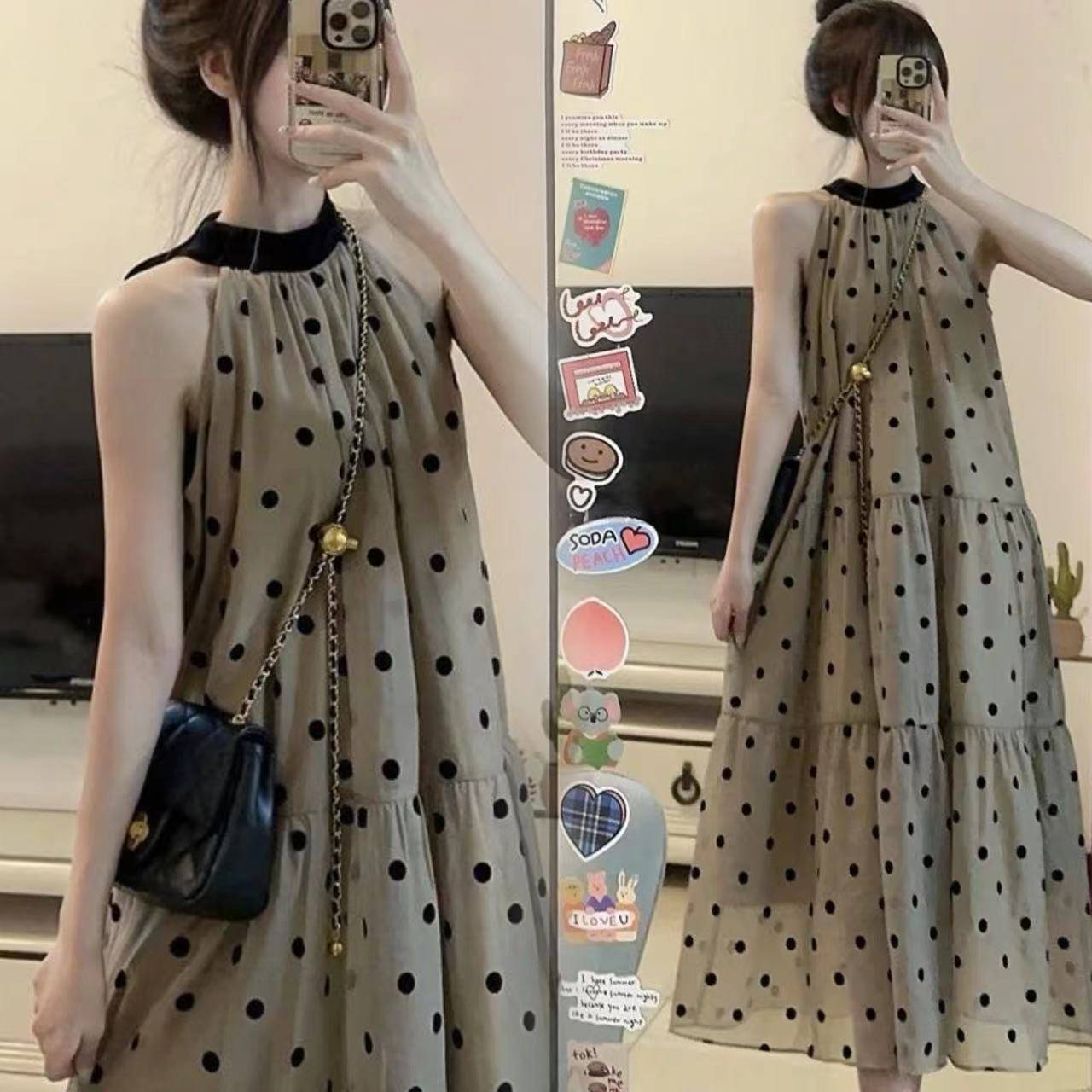 ロングワンピース レディース 夏 ノースリーブ 袖なし チュール マキシ丈 キャミワンピース ロング丈 マキシワンピース メッシュ ドット柄 水玉 春夏 ライン ゆったり 旅行 お洒落 ビーチ
