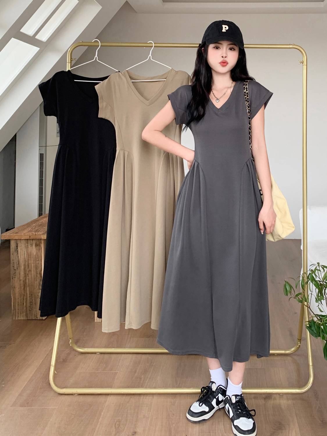 ワンピース レディース ロングワンピース ロング 切り替え 裾 きれいめ Aライン ミモレ丈 着痩せ 韓国風 カジュアル 半袖 大きいサイズ 大人 オフィス OL 通勤 エレガント 体型カバー 春 夏