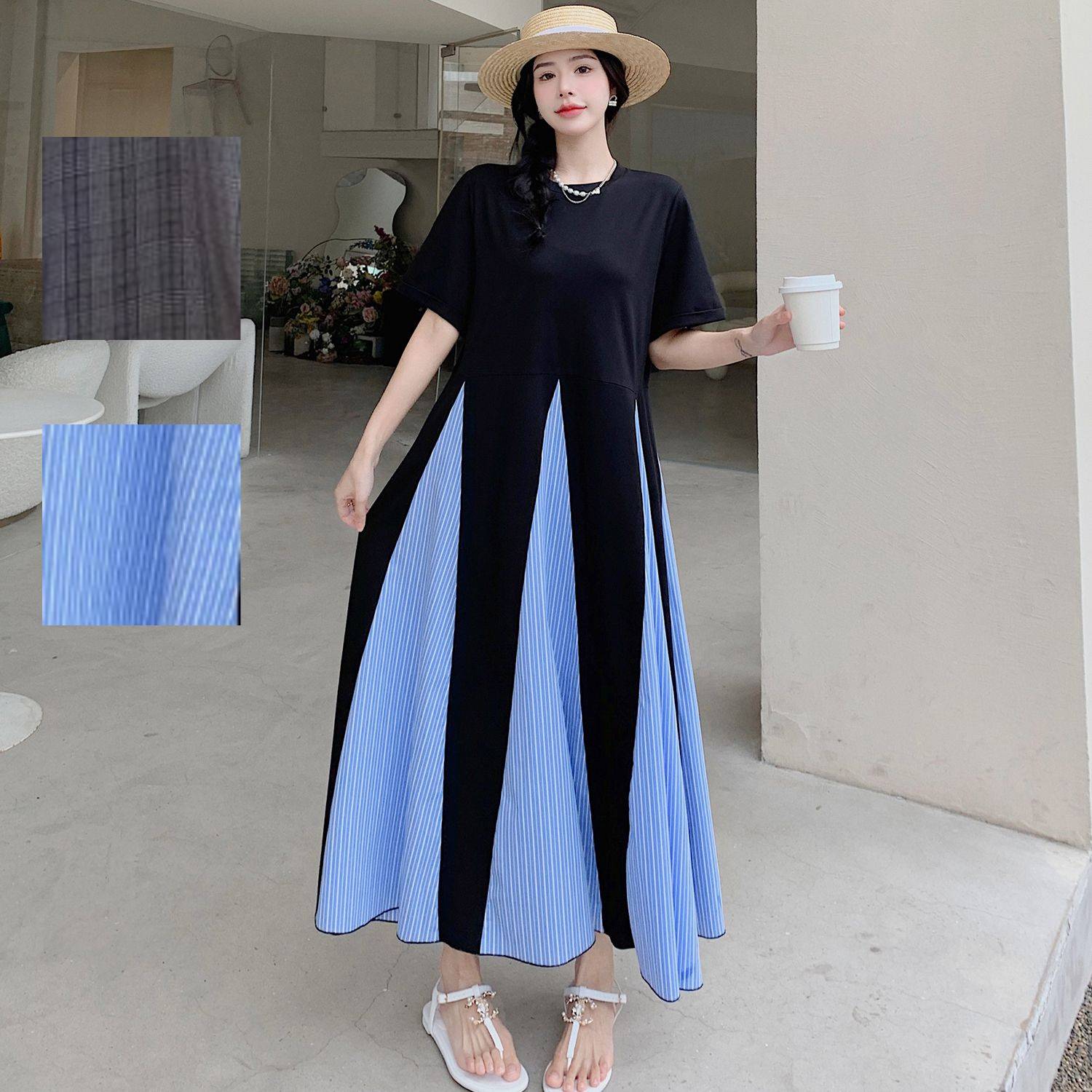 ワンピース ロングワンピース マキシワンピース マキシ丈 ロング カジュアル 切り替え レディース ミモレ丈 きれいめ ワンピ カジュアル 半袖 バイカラー 大きいサイズ ゆったり 体型カバー 春 夏