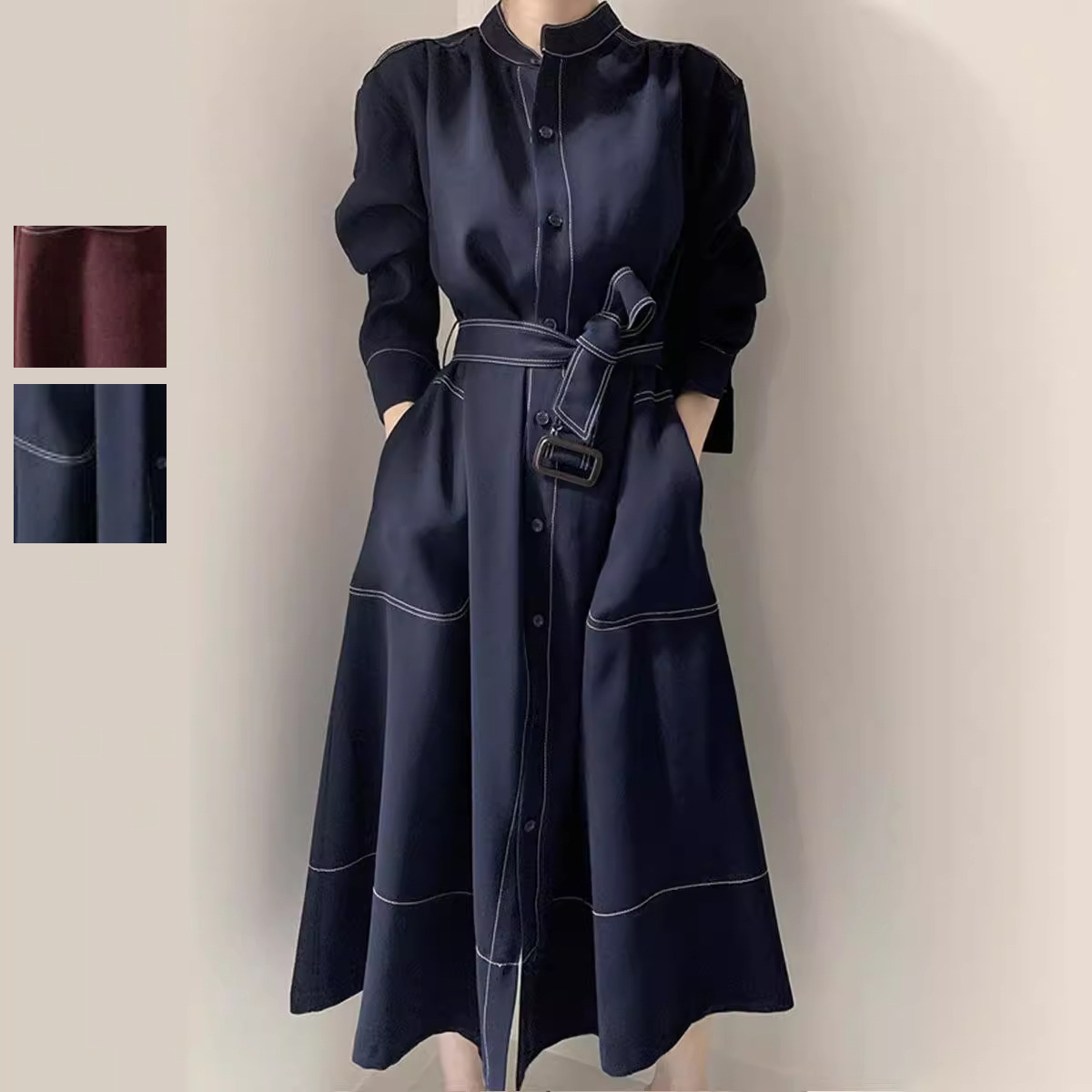 ワンピース レディース ロングワンピース デニムワンピース ロング リゾート リネン デニム きれいめ ライン フレア 長袖 大きいサイズ ゆったり 体型カバー 秋 秋冬 シンプル カジュアル ナチ
