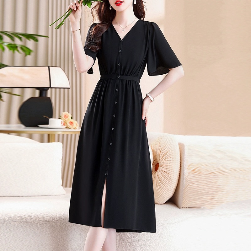 マキシワンピース カジュアルワンピース レディース 半袖 夏 Vネック 春の大人ガーリーレディースファッション ドレス