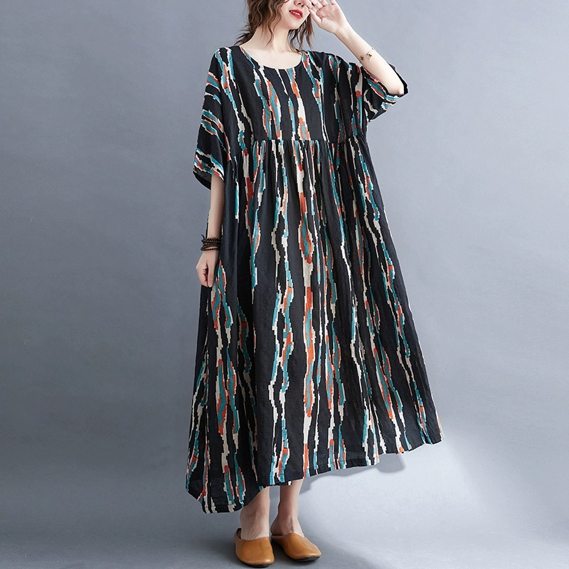 ロングワンピース リゾートワンピース レディース 半袖 夏 ネック プリント 薄手レディースファッション ドレス