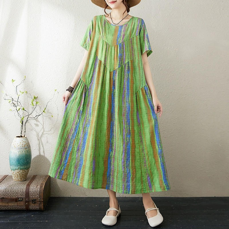 マキシワンピース カジュアルワンピース レディース 半袖 夏 ネック 春の大人ガーリーレディースファッション ドレス