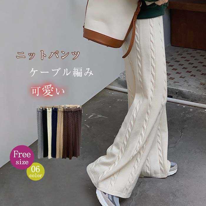 ニット ワイドパンツ レディース きれいめ 秋冬 ケーブル編み 可愛い ゆったり ニットパンツ ワイド パンツ ロングパンツ 秋 冬 ケーブル リラックスパンツ ボトムス