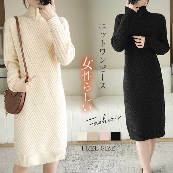 ニット ワンピース ロング きれいめ 秋 冬 ハイネック ニットワンピース 長袖 秋冬 きれいめ ゆったり おしゃれ ロングニットワンピース ニットワンピ インナーワンピース