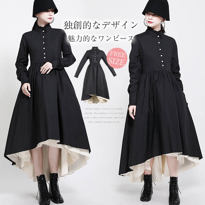 ワンピース レディース 秋冬 長袖 ロングワンピース 秋 冬 春 ワンピ ゆったり 体型カバー ハイネック ワンピース ロング アシンメトリー 切り替え 大人 ロングワンピ