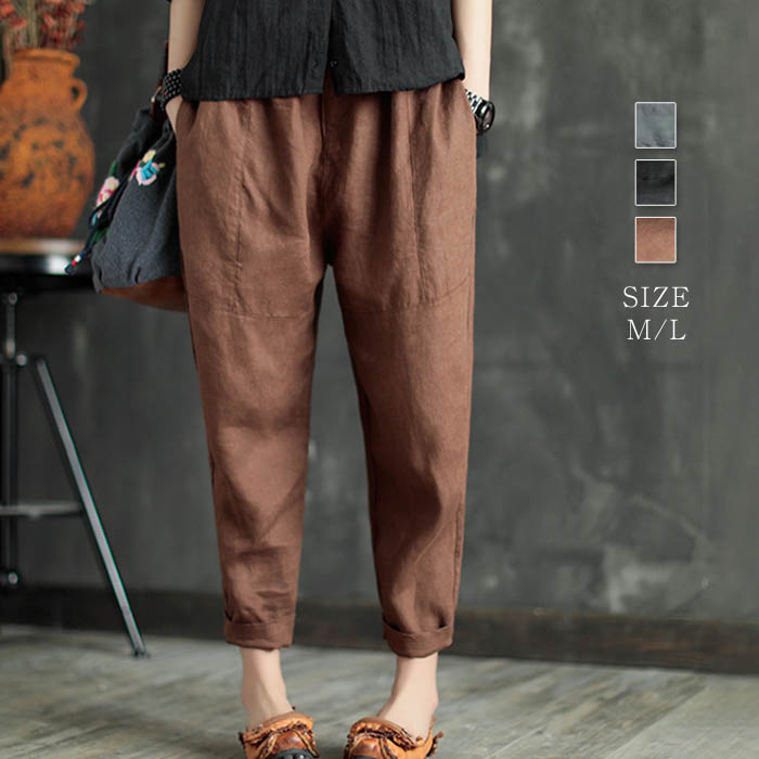 テーパード パンツ 細身 レディース 9分丈 綿麻 テーパードパンツ 切り替え 春 夏 ボトムス ポケット ウエストゴム 体型カバー リラックス リネンパンツ 着痩せ