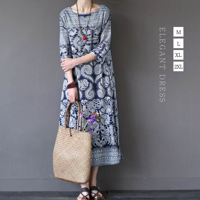 夏 ワンピース カジュアル 5分袖 レディース スリット 花柄 ロング 半袖 花柄ワンピース レトロ フレアワンピース aライン ワンピース 総柄