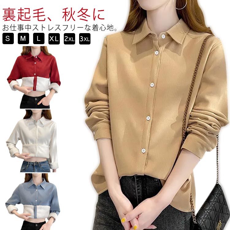 裏起毛 シャツ ブラウス シャツ ワイシャツ レディース 長袖 暖かい 秋冬 スーツ インナー トップス 面接 制服 営業 事務