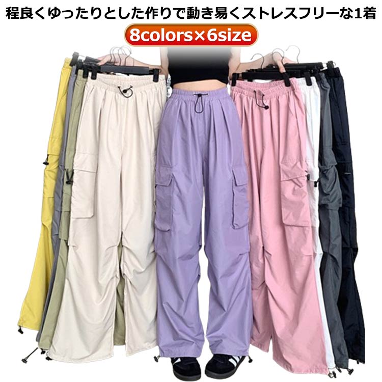 カーゴパンツ ダンス ヒップホップ ワイド ミリタリー レディース カラー 夏 春 ボトムス 2 ジョガー