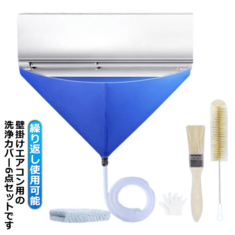 ブラシ エアコン洗浄カバー 繰り返し使用可能 排水ホース エアコンクリーニングカバー 6点セット 2排水ホース*1+エアコン掃除カバー*1+ブラシ*1+布巾*1+使い捨て手袋*1 エアコン 布巾付き