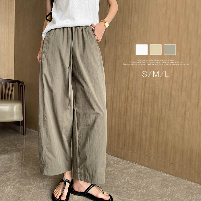 ワイドパンツ レディース ロングパンツ 夏 春 ゆったり ボトムス 春夏 9分丈 ギャザー ワイド 体型カバー ウエストゴム 無地 リラックス