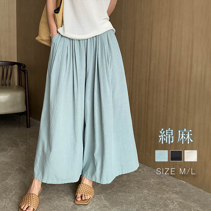 フレアパンツ レディース 夏 綿麻 ワイドパンツ ワイド フレア きれいめ ガウチョパンツ 綿 麻 春 夏 コットン リネン ゆったり エレガント