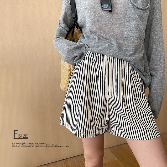 短パン レディース 部屋着 ショートパンツ ストライプ 夏 ハーフパンツ ハイウエスト ストライプパンツ ショート キレイめ ルームウエア