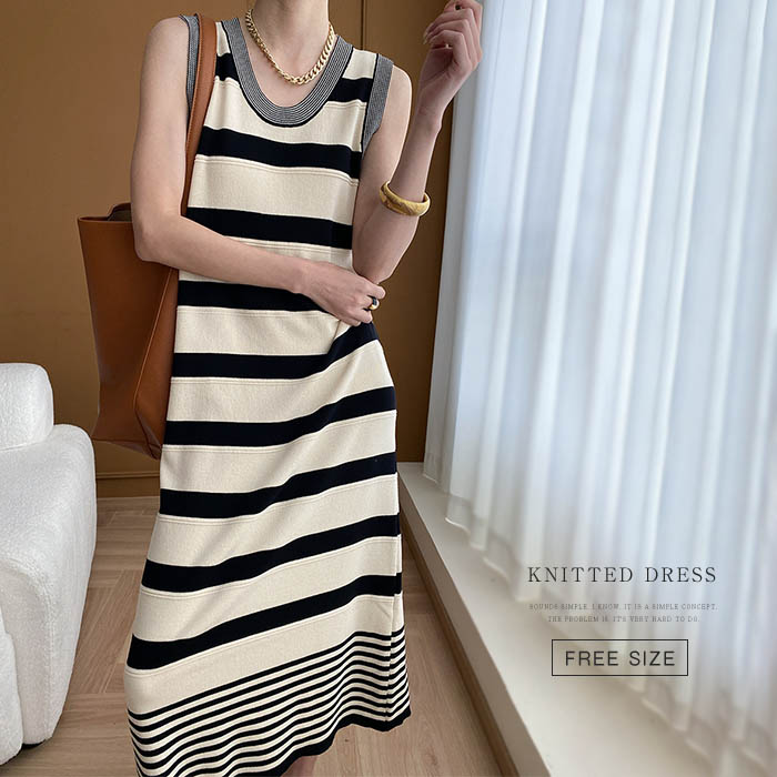 ノースリーブ ニットワンピース 夏 レディース ニット ノースリーブワンピース ワンピース ロング丈 ニットワンピ エレガント きれいめ
