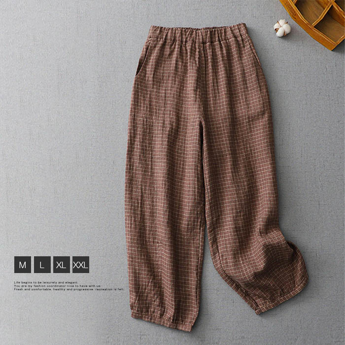 ワイドパンツ レディース 9分丈パンツ イージーパンツ 夏 春 ゆったり ボトムス 春夏 9分丈 ワイド チェック 体型カバー ウエストゴム チェックパンツ リラックス