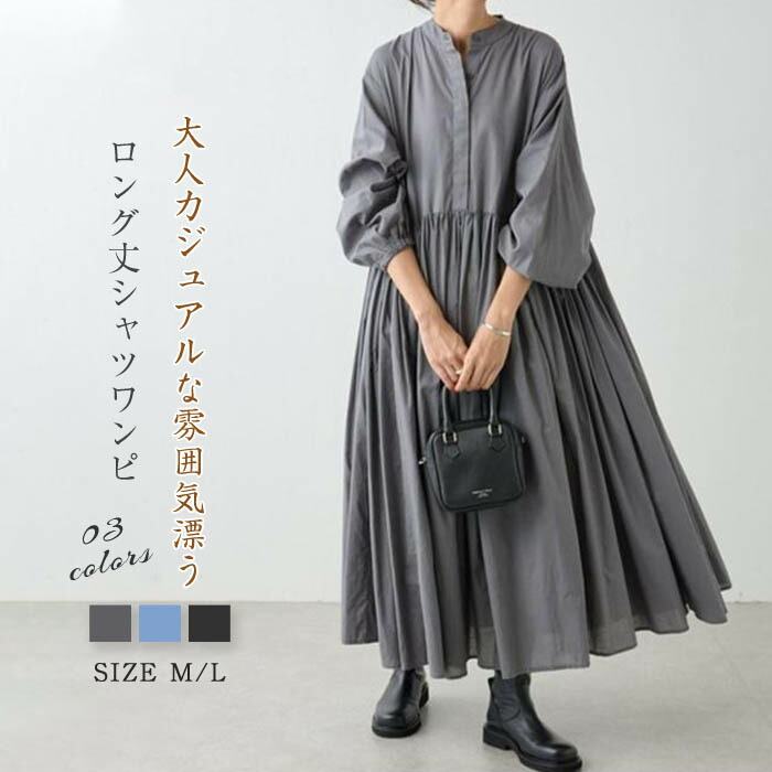 ワンピース レディース 長袖 無地 春秋 シャツワンピース レディースワンピ ロングワンピ レディースワンピース ロングワンピース 長袖ワンピース Aラインワンピース