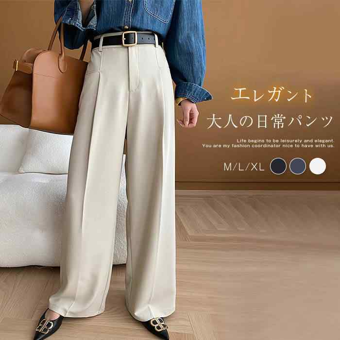 大人のきれいめスタイルに1本はもっておきたいスラックス ボディラインを拾わないストンと落ちるストレートワイドシルエット タックがこだわりの綺麗なシルエットを演出します