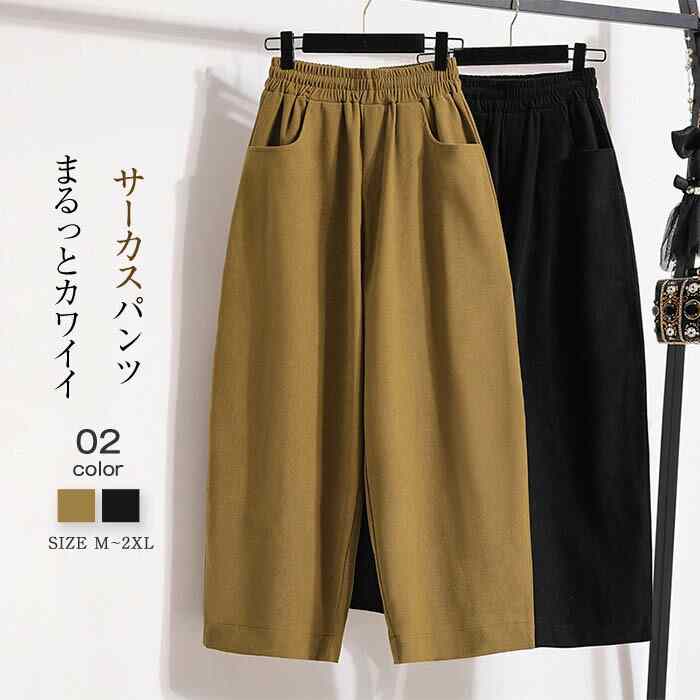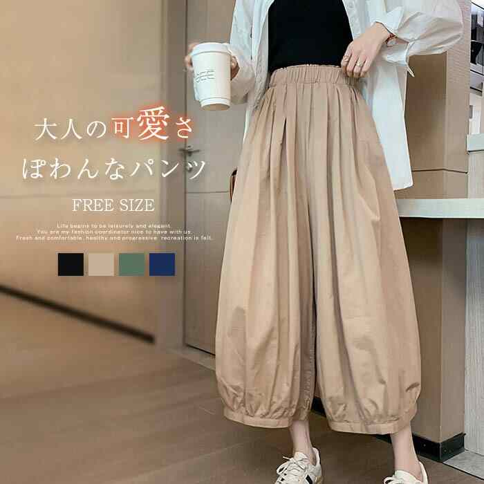 パンツ レディース ロング ボトムス 春夏 春 夏 秋 サーカスパンツ バールンパンツ ぽわん ロング丈 サイドポケット リラックス ギャザー 無地 着回し コットン 体型カバー 高見え