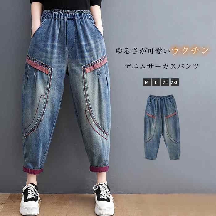 パンツ レディース デニムパンツ ロング ボトムス 春夏 春 夏 秋 デニム サーカス オリジナル ロング丈 9分丈 サーカスパンツ ハイウエスト 裾ロールアップ 着回し リラックス 高見え