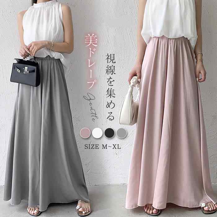 ひらひらと動く度に揺れ、目を惹くデザインワイドパンツです ストンと落ち感のある贅沢生地が想像以上に体型カバー キレイめにもカジュアルにも、色んなシーンで活躍