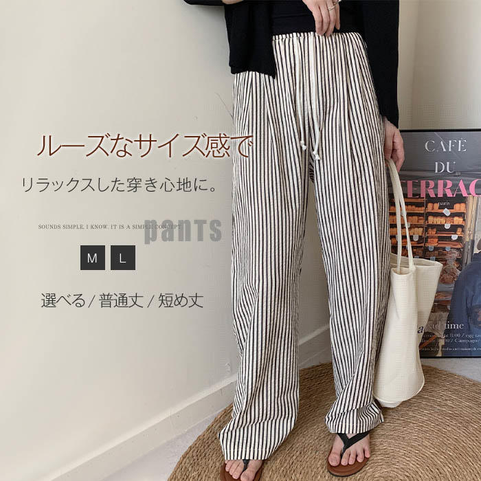 ルーズなサイズ感でリラックスした穿き心地に ワイドパンツ レディース 春 夏 秋 ストライプ パンツ ボトムス パンツ ワイド ひんやり 接触冷感 ロング 美シルエット ゆったり