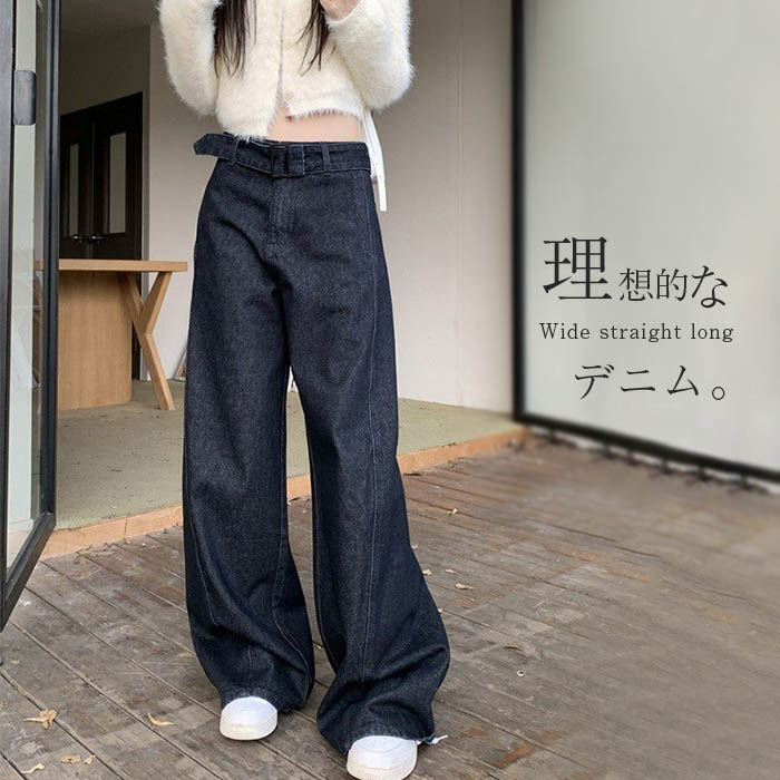 デニム ワイドパンツ レディース ロング丈 マキシ丈 ストレートパンツ デニム 春 秋 デニムパンツ ハイウエスト ボトムス デニムワイドパンツ レトロブルー おしゃれ 上品