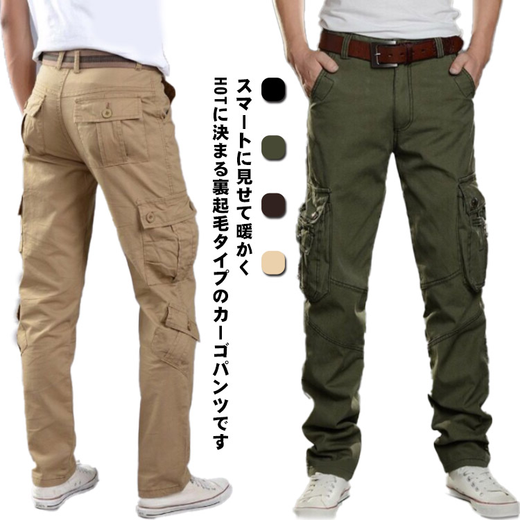 裏起毛 カーゴパンツ メンズ 裏ボア もこもこ 暖かい チノパン 6ポケット 8ポケット カジュアルパンツ あったか ボトムス ゆる ストレート パンツ ミリタリー 防寒 秋冬 保温
