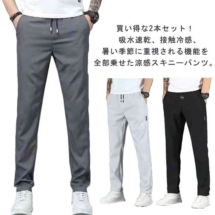 ストレッチパンツ 速乾 パンツ メンズ スキニーパンツ ゴルフパンツ 接触冷感 ひんやり 冷感 薄い