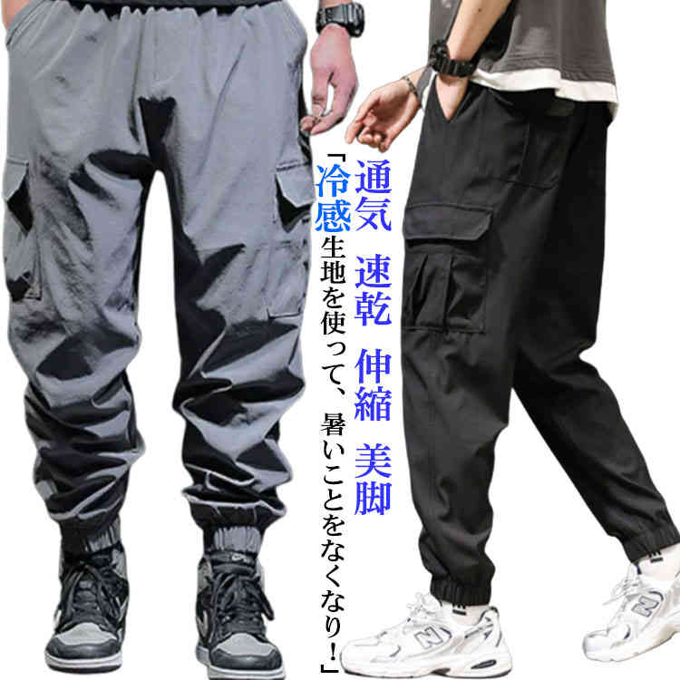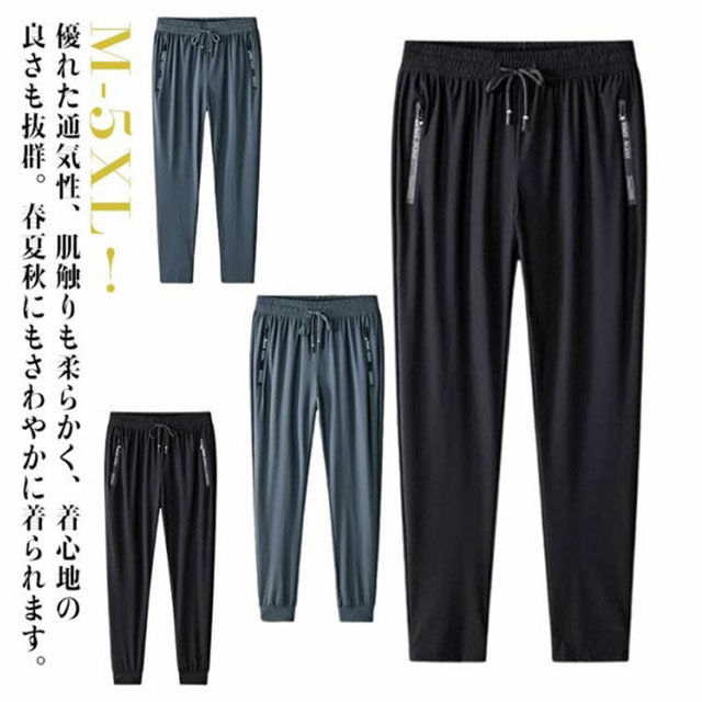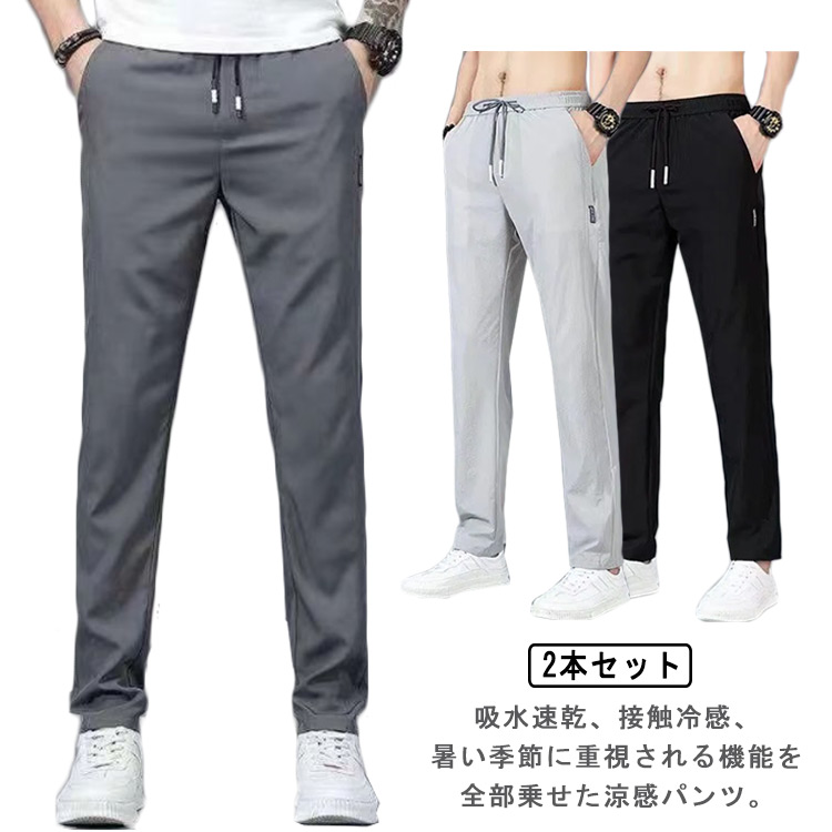 接触冷感 メンズ パンツ 夏 ストレッチ ゆったり 涼しい ロングパンツ スポーツパンツ 薄手 快適 無地 ランニングウエア チノパン 吸水速乾 アイスシルク uvカット ウエストゴム